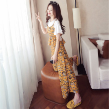 2017春季新款韩版时尚套装字母印花短T雪纺碎花裙两件套女装P254