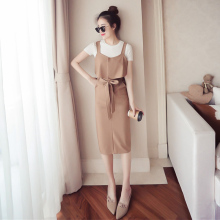 2017夏季新款时尚套装韩版纯色短袖T恤吊带连衣裙两件套女装Q260