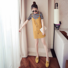2017春装新款韩版短袖T恤背带裙两件套连衣裙女装牛仔吊带裙套装