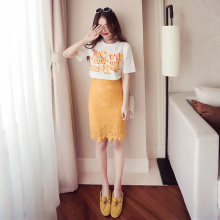 2017春季新款时尚套装短袖T恤高腰蕾丝包臀半身裙两件套女装P349