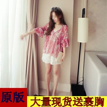 夏季新款性感v领喇叭袖雪纺衬衫女短袖宽松开衫打底吊带衫两件套