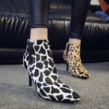 2016秋冬新款大牌欧美风女靴马毛短靴裸靴尖头细高跟真皮马丁靴潮