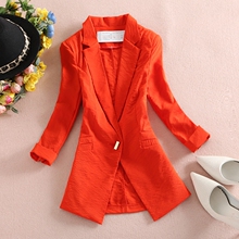 2017春夏显瘦棉麻休闲小西服女中长款百搭修身七分袖薄款外套西装