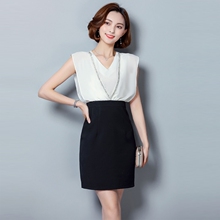 2017夏季新款时尚气质修身显瘦包臀连衣裙拼接撞色ol打底短裙子女