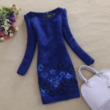 圆领亮片冬季长袖大码修身淑女气质女装毛呢连衣裙秋冬新款打底裙