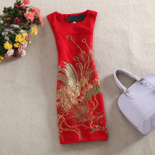 冬季女无袖毛呢子背心裙秋冬款包臀时尚连衣裙2016修身打底裙刺绣