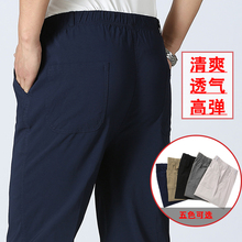 夏季薄款中老年男松紧腰休闲裤 高腰弹力爸爸男裤老年人宽松裤子