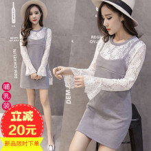 2017哺乳衣外出春新款时尚产后韩版哺乳装修身蕾丝拼接喂奶连衣裙
