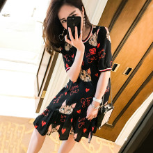 卖萌猫咪 俏皮时髦 夏外出时尚哺乳喂奶宽松显瘦连衣裙