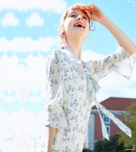 浪漫又知性 精致优雅夏季新款喇叭袖印花外出哺乳喂奶上衣雪纺衫