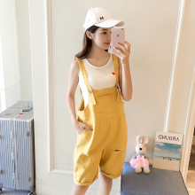 背带短裤女夏2017新款韩版学生宽松背带裤高腰显瘦可爱破洞裤子潮