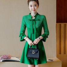 蕾丝连衣裙春秋款2017新款女大码长袖韩版修身气质显瘦打底裙中裙