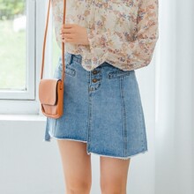 包臀不规则下摆剪边牛仔短裙半身裙2017春夏季新款a字高腰包臀裙