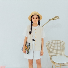 2017新款文艺范复古百搭纯色单排扣马甲 简约棉麻背心女 小外套