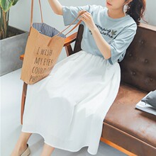 2017夏装新款 小清新圆领纯色短袖T恤上衣女 百褶百搭宽松娃娃衫