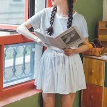 2017夏季新品韩范百搭舒适棉混纺纯色抽绳系带短裤/裤裙休闲女2色