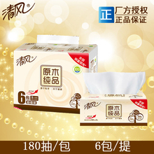 清风抽纸 纸巾 原木纯品180抽6包一提面巾纸 餐巾纸买3件26省包邮
