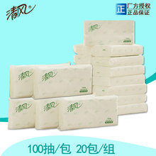 清风经典版抽纸100抽 面巾纸 纸巾餐巾纸206*195mm 20包26省包邮