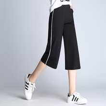 侧边条纹运动裤白边阔腿裤女夏季薄款大码宽松校服裤小个子七分裤