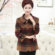 中老年女装秋装外套格子新款40-50岁妈妈装毛呢外套大码冬装上衣