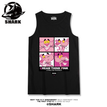 鲨鱼头日系粉红豹纯棉背心休闲潮牌背心夏季男士汗衫圆领嘻哈宽松