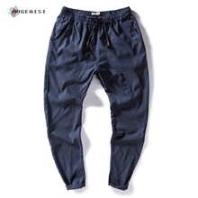 2017春季新款中国风裤子男士亚麻长裤薄款直筒九分裤棉麻裤男无弹