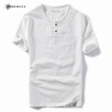 春 夏新款t恤棉麻男士短袖直筒休闲宽松纯色中国风薄款亚麻上衣