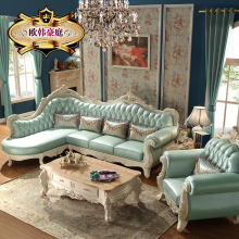 欧式转角沙发组合真皮 大小户型客厅实木雕花家具 欧式皮艺沙发
