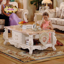 欧式茶几 大理石面实木雕花客厅家具四抽屉新款 欧式大理石茶几