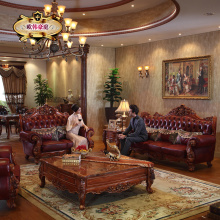 欧式真皮沙发 奢华实木雕花住宅家具头层牛皮法式皮沙发客厅组合