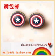 原创耳钉 美国队长标志 时光宝石耳钉耳夹耳饰 女小饰品复古 323