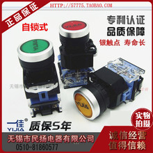 一佳按钮开关自锁式LA38-11BNZS电源带锁平钮红绿黄22mm银触点