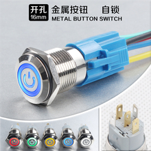 16mm金属按钮带灯LED电源符号自锁按钮开关电线开关按钮改装防水