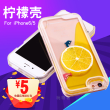 妙质苹果5SE创意立体流动液体柠檬硬壳6PLUS小清新苹果手机保护壳
