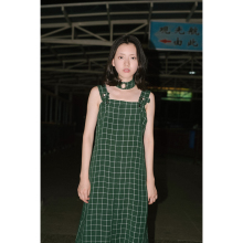 SUPERSCAPE 素泊 复古格纹鸡眼扣背带裙女 中长款吊带裙夏