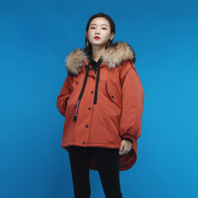 NH奈社冬款加厚大毛领连帽棉服腰间抽绳收腰前短后长棉衣女中长款