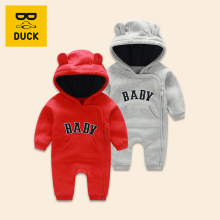 冬款加厚夹棉宝宝连体衣卫衣双层 纯棉爬服哈衣长袖婴幼儿连体衣