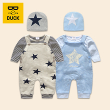 春秋款婴儿童连体衣纯棉两件套装 男童装宝宝外出服星星款哈衣