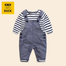 春秋款童装婴儿纯棉牛仔背带裤外出爬服 宝宝长袖哈衣连体衣套装