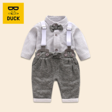 春秋款童装宝宝纯棉绅士背带裤外出爬服 婴儿长袖休闲连体衣套装