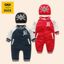 秋冬款童装加厚夹棉婴儿棒球服哈衣 男宝宝连体衣哈衣爬服外出服