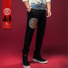 春装中国风男士束腿裤哈伦裤休闲男长裤子民族龙袍不加绒厚卫裤男