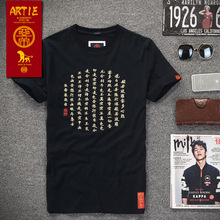 2017春装新款男T恤中国风波密心经绣字男装短袖圆领T恤全棉男体恤