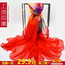 上海故事丝巾女长丝巾春秋冬防晒沙滩巾雪纺围巾披肩两用纱巾超大