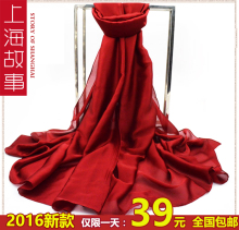 上海故事2016秋冬款丝巾长款围巾女士百搭新款丝巾垂感丝雪纺纱巾