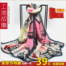 上海故事真丝缎面丝巾女桑蚕丝春秋季两用超长款纱巾披肩围巾礼品