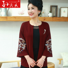 妈妈春装外套女50-60岁2017秋新款老年人奶奶装针织衫开衫外套潮