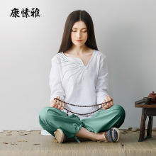 康愫雅棉麻瑜伽服套装绣花春夏季居士禅修服表演服瑜珈服女K756