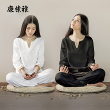 康愫雅棉麻瑜伽服套装茶人春夏季女禅修服居士服高温瑜珈服K201