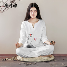 康愫雅春夏季中国风竹节棉麻瑜伽服套装禅修服居士服女瑜珈服